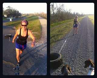 1.5mi with the dogs. 15min, 10min/mi. Ridiculous. My other half is out of town for several days and I just can’t handle going out with the dogs–together–by myself. They’re just too big and run too fast!
