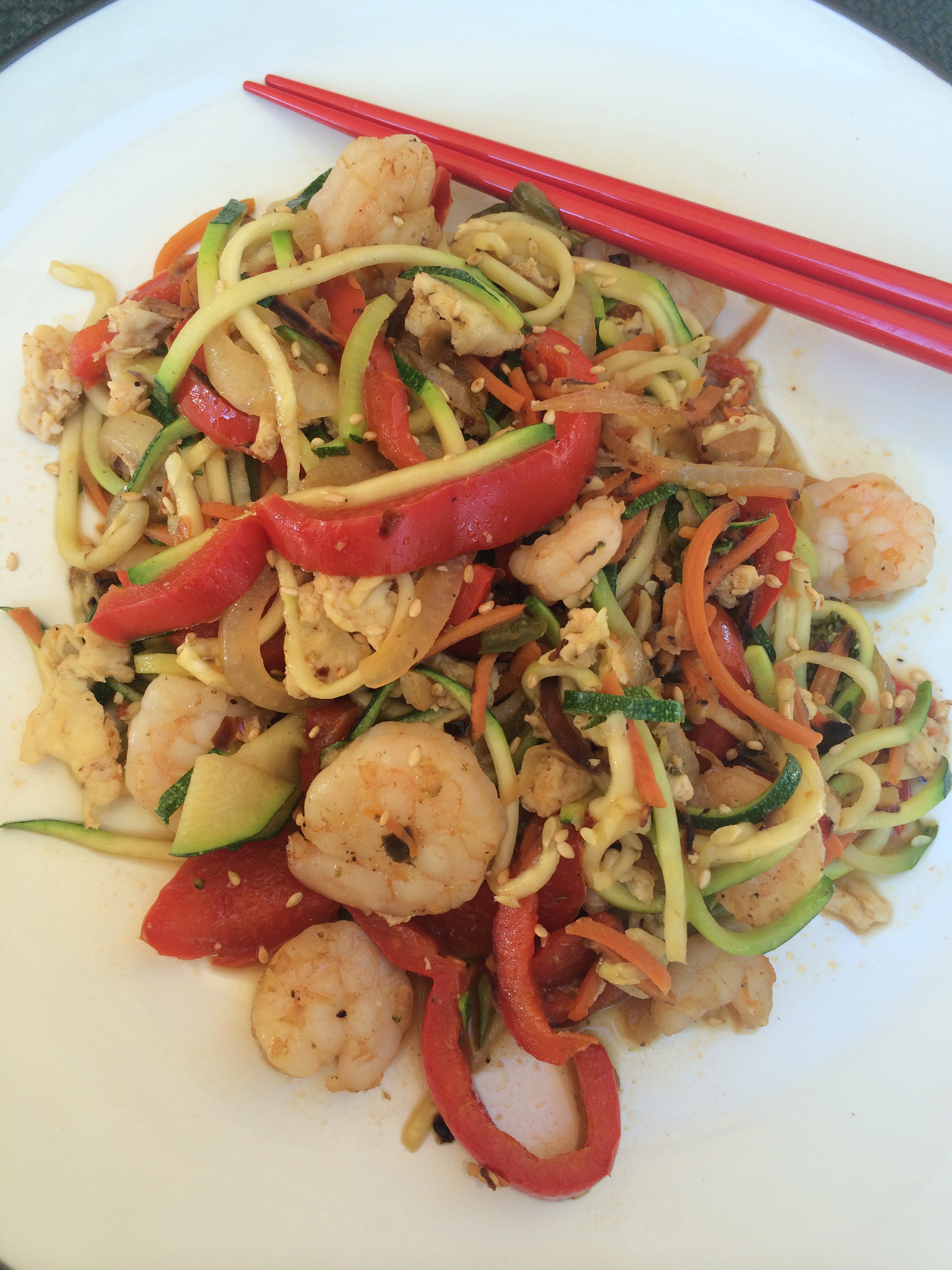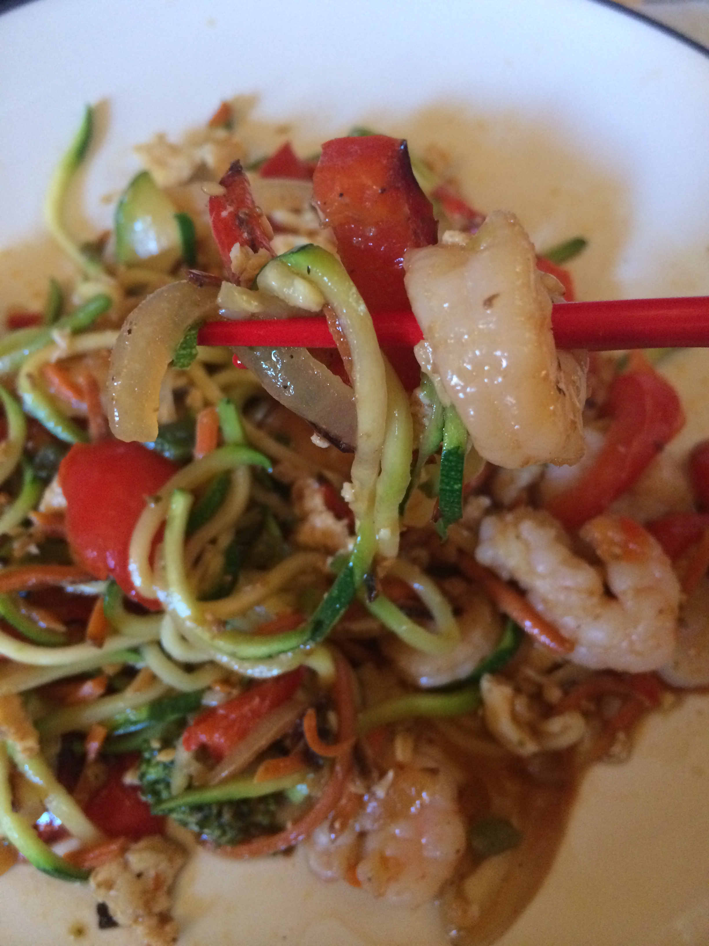 While I did really enjoy it and will make it again, next time I will reduce the amount of sesame oil. I also sauteed my veggies in bacon grease, as I needed more calories. I don’t use “cooking spray” for anything. Many of her recipes are classified as “light”, which is great as they are veggie heavy, but I need more calories if I’m going to be lifting heavy things. OH..hahaha…I used 1/2 pound of shrimp. Not “3-4” . I’m from the coast, we don’t eat just “3-4” shrimp.
