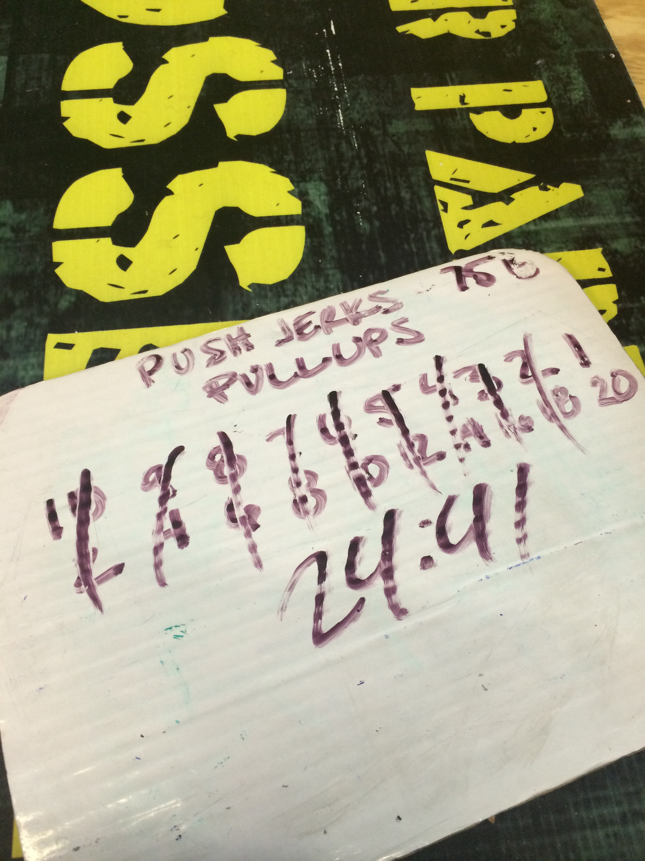 For the 2 of you that care, that’s 10, 9, 8…1 of push jerks, and 2, 4, 6…20 pullups.