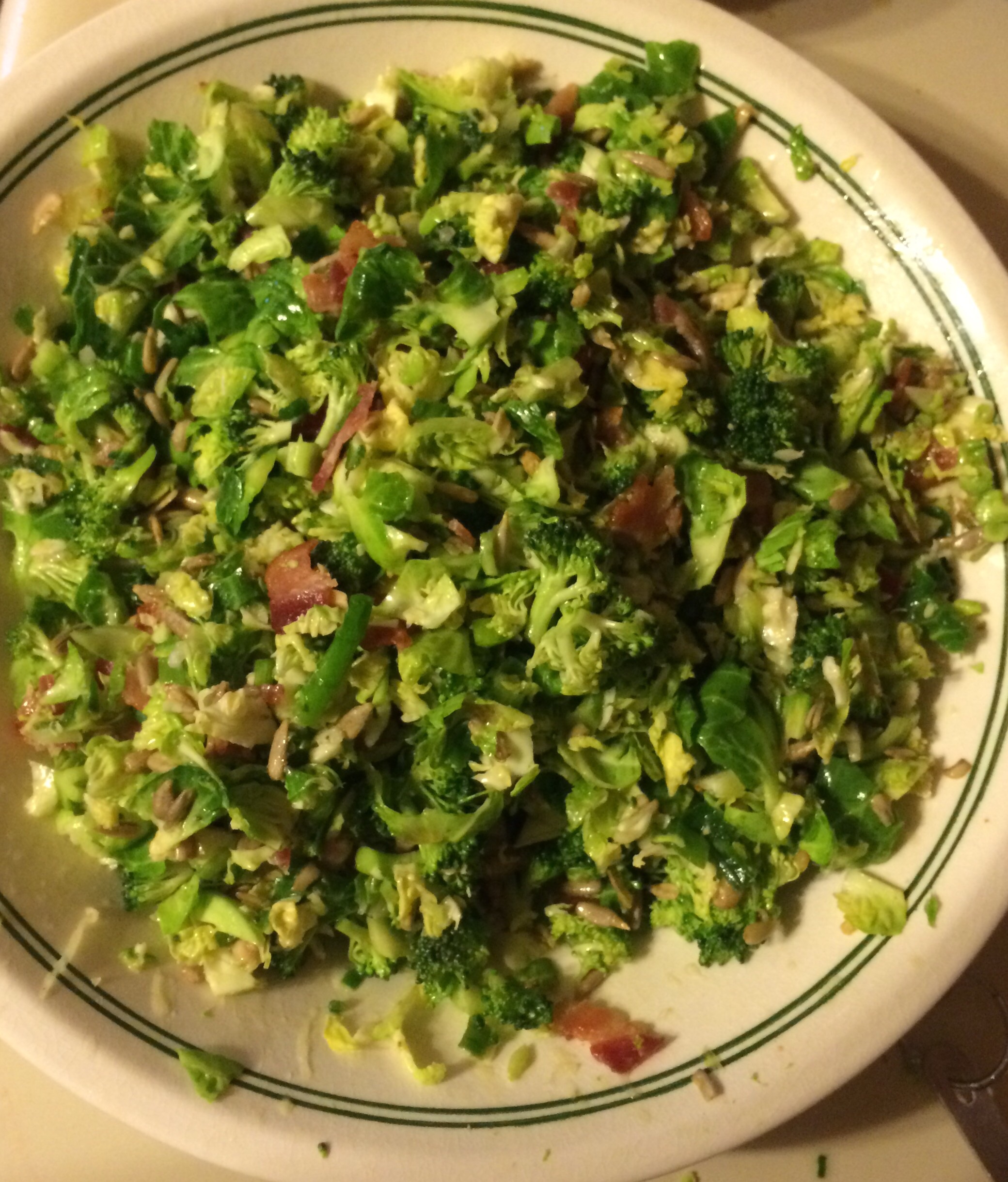 Dinner: broccoli & brussels salad (delicious!) Note: I didn’t use any dried fruit, and didn’t have an orange either. Used 5tbsp of olive oil and extra lemon. Oh, and more bacon since this was my only dinner dish… Either this salad is that good, or brussels are growing on me. I think it’s a little of both!